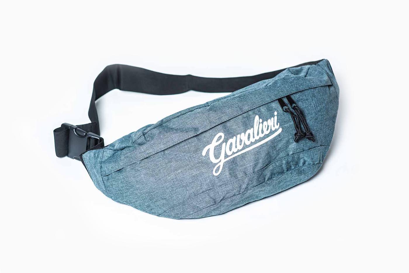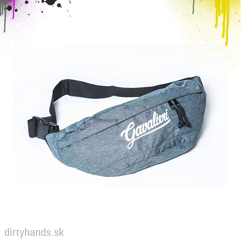 Waist bag v šedom alebo čiernom prevedení s dvoma oddeleniami a 3D vyšitým logom na vonkajšej časti.